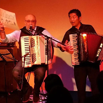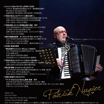 1990年、日本を拠点に音楽活動を始める。キングレコードより「パリの休日」をリリース。以降リーダーアルバムは8枚を越える。そのキャラクターからCMの出演や作詞、歌唱も多く、KDD、ワインカフェ、エリオ等CMに出演。ドラマ「おいしい関係」のアルバムにアコーディオンで参加し、「ビストロスマップ」のテーマソングに使われていた。