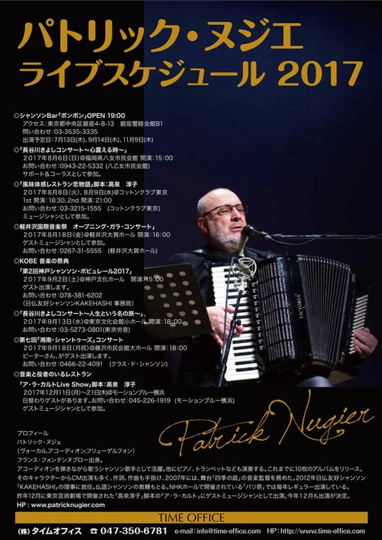 2005年、初めて台詞があるお芝居に挑戦。青山円形劇場の「アラカルト」にゲスト出演。2007年「四季の庭」の音楽監督と奏者を務める。加藤和彦&坂崎幸之助のユニット「KAZUKOH」のコンサートで「イムジン河」をフランス語で歌い、好評を博す。NHKホールでのパリ祭コンサートには毎年レギュラー出演をしている。2015年福島にて「フランス音楽とシャンソンの歴史」のフォーラムに出演。2016年2月 高泉淳子の書き下ろし”ピアフが残した愛の言葉”リーディングライブを開催。女性歌手AnneLiseをフランスから招き共演。2016年は「ミラボー橋」をロックアレンジで歌い好評を博す。